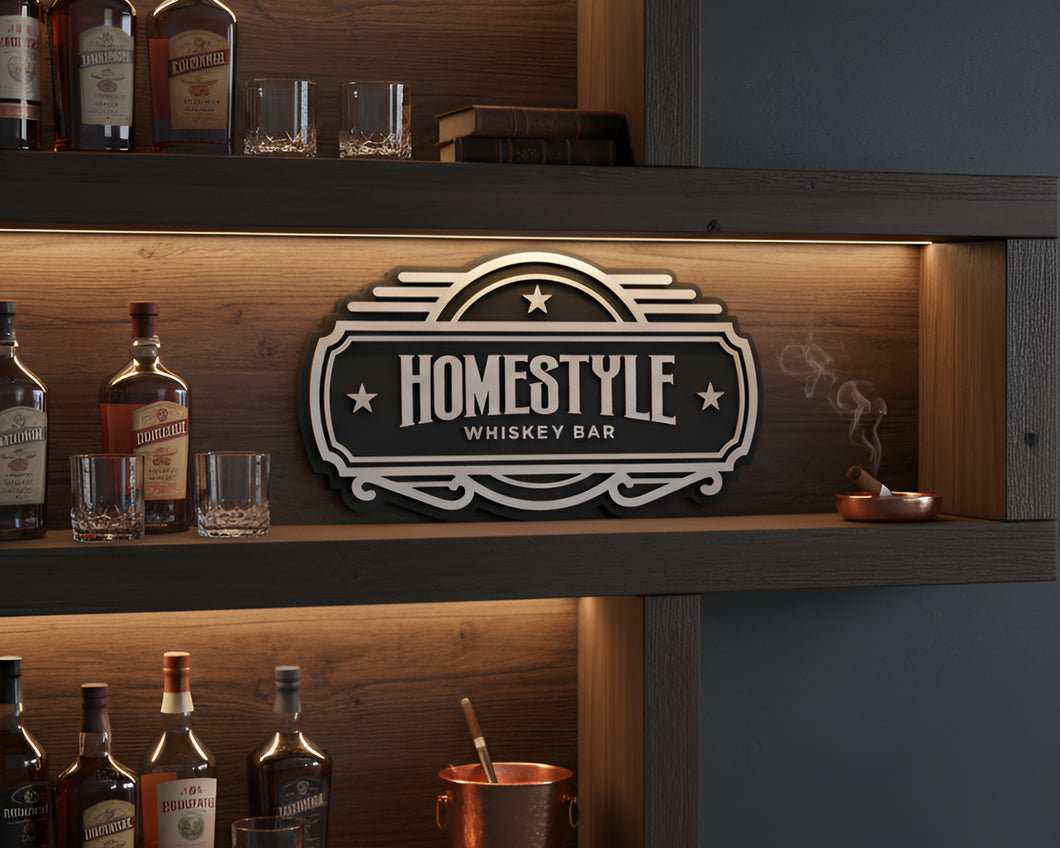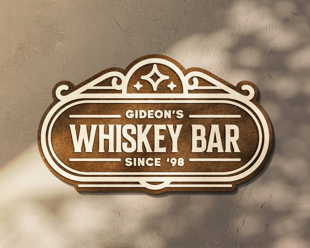 Personalization on top with “Whiskey Bar” underneath